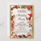 Festive annual company holiday party invitation with a sparkly gold glitter sparkles border, red and white gifts with bows, decorations such as red baubles, and black writing on rustic white wood resembling a blanket of snow. This is a perfect holiday/ Christmas/ winter invitation!