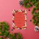 This wedding invitation features a vibrant floral background with large, stylized flowers in shades of red, orange, and cream, creating a lively and colorful atmosphere. The central oval frame is filled with a deep coral color, providing a striking contrast to the busy backdrop. Elegant serif typography is used for the text, which is arranged hierarchically within the frame, conveying formality and sophistication. The overall design combines traditional elements with a modern color palette, evoking a sense of celebration and joy, perfect for a festive and inviting occasion.