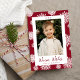 Festive Cranberry and White Snowflakes Photo Holiday Card