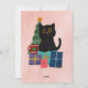 Festive Cute Black Cat Coffee Pink Christmas Party Holiday Card