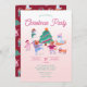 Festive Cute Dogs Ice Skating Pink Christmas Party Invitation