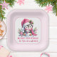 Festive Cute Penguin Pink Custom Merry Christmas Paper Plate