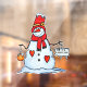 This charming image features a snowman illustration. The snowman, dressed in a red hat and scarf, holds a lantern and a heart-shaped ornament, creating a delightful holiday atmosphere.