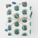 Festive Decorated Christmas Tree Pattern Wrapping Paper Sheets in blue, green and red colours.