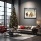 A festive scene is depicted in this image, showcasing a jolly Santa Claus with a plethora of presents. The Santa Claus figure is prominently featured in the centre, dressed in his traditional red and white suit with a fluffy hat. He is laden with gifts, exuding holiday cheer as he spreads joy. The overall composition evokes a warm and cosy holiday atmosphere, perfect for spreading Christmas spirit