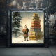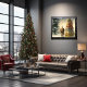 A festive scene is depicted in this image, showcasing a jolly Santa Claus with a plethora of presents. The Santa Claus figure is prominently featured in the centre, dressed in his traditional red and white suit with a fluffy hat. He is laden with gifts, exuding holiday cheer as he spreads joy. The overall composition evokes a warm and cosy holiday atmosphere, perfect for spreading Christmas spirit