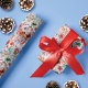 The colour palette is a cheerful blend of red, green, blue, brown, and white, mirroring the festive hues of the holiday season. This combination radiates warmth, joy, and a hint of nostalgia, making your gift wrapping a true celebration.