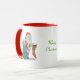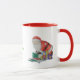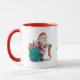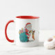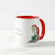This original christmas mug is a picture of two Santa's. one santa is wrapping gifts and the other santa has gifts in his Christmas sack ready for the Christmas day delivery. The seasonal design is produced from an original watercolor painting and makes a lovely festive mug for children or adults who love the cute and traditional side of the Christmas season. This original illustration will cheer everyone’s holiday celebrations. the seasonal plate is customisable, you can add your own text.