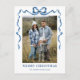 Festive Dusty Blue Christmas Bow Ribbon 2 Photo Postcard