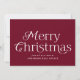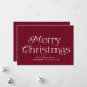 Simple business holiday card featuring "Merry Christmas" displayed in elegant white lettering with a burgundy background. Personalise the front of the non-photo Christmas card with your business name. The card reverses to display your personal message in white lettering surrounded by subtle white dots on a burgundy background.