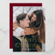 Simple holiday card featuring your full-bleed vertical photo with "Merry Christmas" displayed in elegant gold foil lettering. Personalise the foil photo Christmas card with your family name and the year. The card reverses to display a burgundy background with subtle white dots.