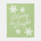 Festive Elegant Seasons Greetings On Light Green Fleece Blanket