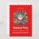 Invite your loved ones to a holly-jolly celebration with this charming Christmas Party invitation, starring an adorable Santa-inspired elf! Surrounded by gifts, candy canes, ornaments, and a beautifully decorated tree, this invitation bursts with holiday magic. The playful red backdrop and scalloped edges make it a delightful choice for spreading festive cheer. Perfect for holiday gatherings that blend whimsy and warmth, this card will set the tone for an unforgettable evening filled with joy and togetherness.