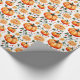 Wrapping paper in a fall-themed pattern featuring vibrant orange pumpkins intertwined with blooming chrysanthemums in warm yellow and orange hues, creating a festive harvest-inspired design