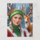 Festive Fantasy blonde woman and deer Christmas Postcard