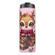 Delight little girls with this enchanting holiday tumbler featuring an adorable fawn with festive antlers, wrapped in a cosy plaid scarf and surrounded by colourful holiday treats. Set against a soft pink background with snowflakes, this design brings the magic of Christmas to life. Perfect as a holiday gift, this tumbler adds a touch of warmth and joy to every sip