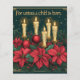 Encircling the candles is a lush arrangement of red poinsettias, holly sprigs, pine branches, and clusters of vibrant red berries, all set against a deep green background. Golden ornaments, delicate snowflakes, and ornate corner decorations add sophistication and festivity, making this design perfect for holiday-themed projects. The blend of candlelight, rich greenery, and classic Christmas decor captures the essence of the season, ideal for religious-themed scrapbooking, holiday crafts, or seasonal decor.