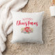 A simple merry Christmas throw pillow to decorate your home for the holidays. Merry Christmas with flowers decorates the front, and a red and white leaf pattern decorates the back. Coordinates with the floral monogram lumbar pillow.