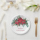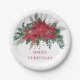 Festive Floral Red Poinsettia Merry Christmas Paper Plate