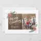 Add an extra festive touch to your holiday greetings with this 1-photo card, featuring hand lettered calligraphy artwork and hand drawn foliage, all on a rustic wooden background.