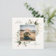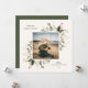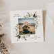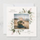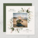 Festive Holiday Botanical Foliage Frame, flat photo card. Features, Olive green colour typography and matching solid colour backing.