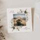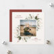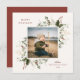 Festive Holiday Botanical Foliage Frame, flat photo card. Features, rustic red colour typography and matching solid colour backing.