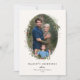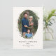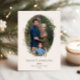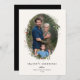 Festive Holiday Botanical Foliage Oval Frame, flat photo card. Features, black colour typography and matching solid colour backing.