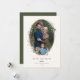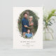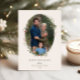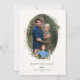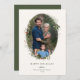 Festive Holiday Botanical Foliage Oval Frame, flat photo card. Features, Olive green colour typography and matching solid colour backing.