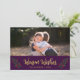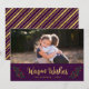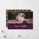 Holiday Photo Card featuring the words "Warm Wishes" in a stylish script in faux gold surrounded by festive leaves and berries against a purple background. Card includes a purple and faux gold stripes backside. Check out other holiday items here https://www.zazzle.com/collections/holiday_christmas_new_year_cards-119015800351034065?rf=238364477188679314