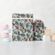 This festive woodland animals wrapping paper features hand-drawn illustrations of squirrels, acorns and mushrooms in black ink against an elegant soft blue background.