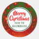 Sticker holiday gift tags with a red and green festive fractal background. The "Merry Christmas" greeting and family it is from can be changed.