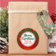 Sticker holiday gift tags with a red and green festive fractal background. The "Merry Christmas" greeting and family it is from can be changed.