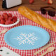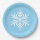 Festive Fun White Alpine Snowflake On Light Blue Paper Plate