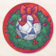 Festive Futbal in Wreath on Red Round Paper Coaster