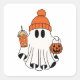 Festive Ghost with Pumpkin Basket & Iced Latte Square Sticker