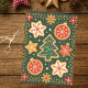 Wrap your gifts in the heartwarming spirit of a homemade holiday with this festive tissue paper. Featuring an assortment of classic Christmas cookie shapes—gingerbread stars and ornaments with intricate white icing patterns and a cheerful green Christmas tree with red ornaments—this design transforms gift wrapping into a visual feast. The rich, deep teal background, dotted with tiny lights, evokes a cosy winter's night, while a border of rustic red flowers and golden botanical accents frames the scene with timeless charm.