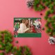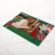 This stylish Christmas greeting features a festive illustrated girl finishing holiday shopping and decorating preparations. Real foil text and your family photo add beautiful finishing touches to this fun design. The back of this greeting is a holiday red and green plaid. Additional backs are available for this fun greeting card!