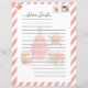 Festive Girls Christmas Wish List Letter to Santa sheets. These beautifully designed sheets feature a charming pink and white striped border, adding a touch of festive sparkle. At the top, the text 'Dear Santa' is written in a stylish cursive font, inviting children to share their holiday wishes. The bottom of the sheet is decorated with colourful Christmas-themed illustrations, including a pink Christmas tree, a pink star, and three wrapped gifts. There are also two stamps in the top right corner, one with a gingerbread man and candy cane, and the other with a snowman. The playful and festive design makes it perfect for girls to write their Christmas wish lists and send them to Santa. Inside the flyer, there are several horizontal lines for children to neatly write their wishes, making it easy for Santa to read and fulfil their holiday dreams.