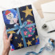 This festive and cheery pattern is perfect for the Christmas holiday season. It features hand-painted watercolor Santa Claus, snowman, poinsettia flowers, and holly berries with ivy ornaments, alongside faux printed gold glitter stars on top of a dark navy blue background. It's fun, cute, artsy, unique, and original. Enjoy this design stylised with hand-painted watercolor art done by the artist of La Femme, Rachel Matheney.