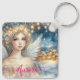 Festive Gold Watercolor Ethereal Frost Snow Angel Key Ring