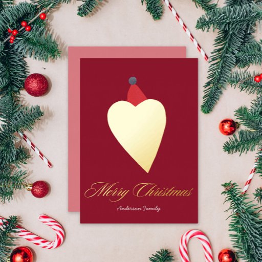 Send heartfelt holiday wishes with our "Festive Golden Heart with Christmas Hat Green Foil Holiday Card." Featuring a shimmering golden heart topped with a festive Christmas hat, this elegant design embodies the warmth, love, and togetherness of the season. Perfect for adding a magical touch to your holiday greetings, the foil detail catches the light beautifully, making each message even more special. Spread cheer and holiday magic to friends and family with this charming postcard, wishing them a season filled with joy, love, and cherished memories. Happy Holidays!