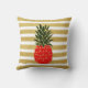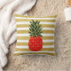 This stylish Christmas pillow has a faux gold stripe background, and a red green and gold pineapple to add a glam, tropical holiday touch to your decor! We have used some art from Indie Grace Design.
