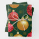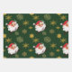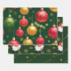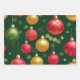 This bold green set comes with three (3) wrapping paper sheets. One having large glittery Christmas Balls, the second is a Santa and Christmas items motif and the third a typography print with an embossed gold look.