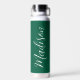 A gorgeous hunter green water bottle with white monogram for a girl or guy who loves simple, handwritten gifts for Christmas. Beautiful cursive script down the side of your bottle spelling out your name.