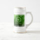 Add a festive touch to year-end and Christmas celebrations with this elegant beer stein, which features snowflakes falling on a faux metallic forest green foil / ombre / moire background. Add initial / monogram (or logo), name, year, or custom text as desired. Reverse shows identical design.
