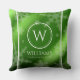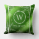 Festive Green Foil Snowflakes Monogram Name Cushion