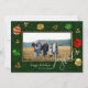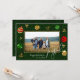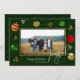 Share your joyful holiday memories with this festive horizontal photo card. Adorned with deep green swirls, shimmering gold accents, and classic red and green ornaments, it's perfect for showcasing your favourite family photo.