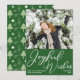 Bring joyful wishes to your friends and family this holiday season with this beautiful, bold vertical photo Christmas card. Simple cursive white script over a festive green background underneath your family photograph. A chic, modern holiday card with a picture of your kids. A lovely white Christmas tree pattern on the back.
