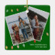 Modern, festive and cheerful Merry and Bright script calligraphy decorated with bright and colorful strings of Christmas lights. Upload three of your favorite family photos and customize and personalize with year and family name to make it unique. Green Background