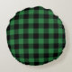 Festive Green Plaid Pattern Holiday Round Cushion